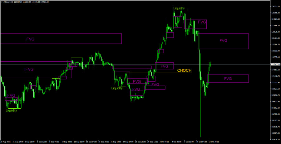 Торговые рекомендации по Биткоину(Bitcoin) на 12 октября по системе ICT.