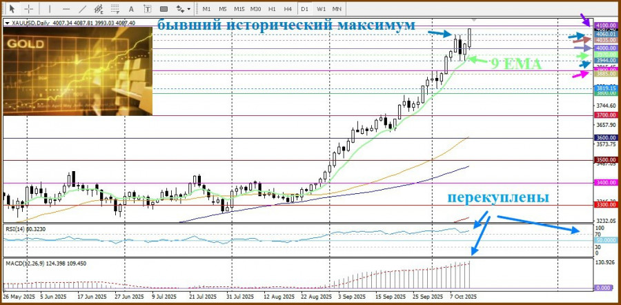 Сегодня золото вновь установило новый исторический максимум, стремясь к следующему круглому уровню $4100 на фоне благоприятного фундаментального фона.
