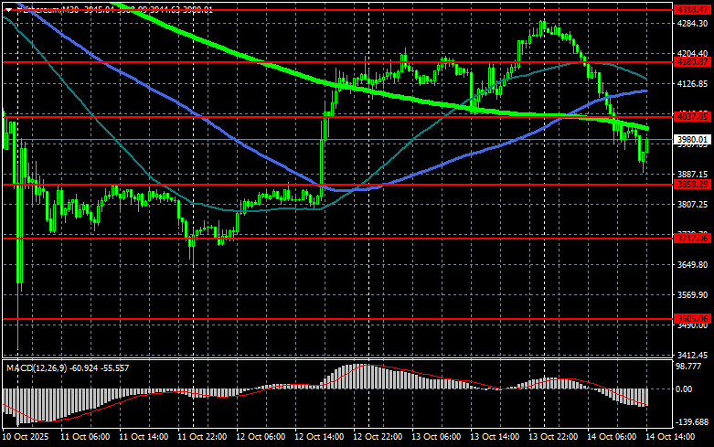 Макроэкономическая напряжённость также продолжает оказывать влияние на рынок. Возобновившиеся торговые трения между США и Китаем, подчеркнутые 100%-ми пошлинами США на китайский импорт и сообщениями об ограничениях китайского экспорта, не добавляют уверенности трейдерам. Торговые рекомендации:Что касается технической картины Bitcoin, то покупатели сейчас нацелены на возврат уровня $112 200, который открывает прямую дорогу на $114 200, а там уже и рукой подать до уровня 116 300. Самой дальней целью выступит максимум в районе $118 400, преодоление которого будет означать укрепление бычьего рынка. В случае падения биткоина покупателей жду на уровне $109 900. Возврат торгового инструмента под эту область может быстро свалить BTC в район $108 600. Самой дальней целью будет область $106 700.Что касается технической картины Ethereum, то очевидное закрепление выше уровня в $4037 открывает прямую дорогу на $4318. Самой дальней целью выступит максимум в районе $4403, преодоление которого будет означать укрепление бычьего рынка рост интереса покупателей. В случае падения эфира покупателей жду на уровне $3858. Возврат торгового инструмента под эту область может быстро свалить ETH в район $3717. Самой дальней целью будет область $3505. Что на графике: