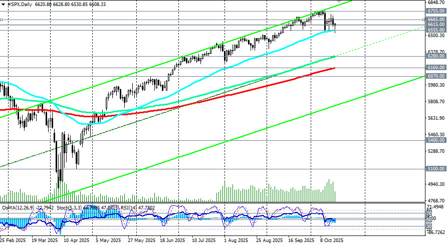 Ключевые факторы, за которыми стоит следить в настоящий момент - развитие переговоров между США и Китаем по экспортным ограничениям, ход голосований в Конгрессе по бюджету и новые заявления представителей ФРС, которые будут формировать ожидания по ставкам.В краткосрочной перспективе давление на фьючерсы американских индексов и ослабление доллара вероятно продолжатся, пока сохраняются торговая напряжённость с Китаем и бюджетный кризис в США, также предположили мы в нашем сегодняшнем обзоре «Доллар и американские индексы: под двойным ударом». Пока же готовилась данная статья, на фондовом рынке и в его индексах произошел некоторый отскок от внутридневных минимумов, в частности, в котировках американского индекса широкого рынка S&P500, соответствующих минимумам середины сентября. На момент публикации данной статьи, цена подскочила на 1,4%, оттолкнувшись от внутридневного минимума 6530.00 и поднявшись к цене открытия сегодняшнего торгового дня и к отметке 6620.00. Если рассуждать с технической точки зрения, то рост возможен к краткосрочному уровню сопротивления 6665.00 (ЕМА200 на 1-часовом графике) уже сегодня. Несмотря на сильное снижение, наблюдавшееся в минувшую пятницу, цена смогла удержаться в зоне среднесрочного бычьего рынка, весьма далеко от ключевых уровней поддержки 6280.00 (ЕМА144 на дневном графике), 6160.00 (ЕМА200 на дневном графике), отделяющих среднесрочный бычий рынок от медвежьего. Найдя поддержку на важном уровне 6555.00 (ЕМА50 на дневном графике) после сегодняшнего его ретеста, цена резко пошла вверх буквально за пару часов до начала американской торговой сессии и, пробив «круглую» отметку 6600.00, пытается закрепиться в зоне выше важного краткосрочного уровня сопротивления 6615.00 (ЕМА200 на 4-часовом графике). В целом преобладает долгосрочная восходящая динамика как всего американского фондового рынка, так и одного из 3-х важнейших индексов – индекса S&P500. В основном сценарии ожидаем продолжение роста цены. Предпочтительными, по-прежнему, остаются длинные позиции. Пробой важного краткосрочного уровня сопротивления 6665.00 (ЕМА200 на 1-часовом графике) станет дополнительным и подтверждающим сигналом для новых длинных позиций. После пробоя рекордного максимума 6760.00, достигнутого на минувшей неделе, далее цена может двигаться выше, обновляя исторические максимумы, пока «не нащупает» новые уровни сопротивления. В альтернативном сценарии возможна и более глубокая коррекция в сторону ключевых поддержек на уровнях 6280.00, 6160.00. Пробой же уровня поддержки 6070.00 (ЕМА50 на недельном графике) и дальнейшее снижение выведут цену в зону среднесрочного медвежьего рынка. Однако, об этом пока что рассуждаем чисто с теоретической точки зрения. Учитывая глобальный восходящий тренд S&P500, любое снижение к важным уровням поддержки, как это было в случае с уровнем 6555.00, может стать лишь поводом для новых длинных позиций. открыть торговый счет + зарегистрироваться в системе копирования сигналов + инвестировать в ПАММ-системе Материал предоставлен компанией InstaForex - www.instaforex.com