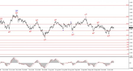 По инструменту GBP/USD волновая разметка продолжает свидетельствовать о построении повышательной структуры волн(вторая картинка), но за последние несколько недель она приняла сложный и неоднозначный вид(первая картинка). Британец снизился слишком сильно, поэтому участок тренда, берущий свое начало 1 августа, теперь выглядит неоднозначно. Первое, что при ходит на ум, это усложнение предполагаемой волны 4 которая примет трехволновой вид, и внутри каждой из ее подволн также будет построено по три волны. В этом случае можно ожидать снижения инструмента к 31 и 30 фигурам. Однако понижательная структура волн, берущая начало 17 сентября, уже приняла трехволновой вид. Дальше – либо усложнение до пятиволновой структуры, либо построение нового повышательного набора волн. Безусловно, я жду лишь повышения котировок при любой волновой структуре. На мой взгляд, новостной фон сейчас настолько однозначен, что ничего иного ожидать нельзя. Однако в последние несколько недели покупатели не проявляют никакой инициативы. В данное время очень многое на валютном рынке зависит от политики Дональда Трампа. Рынок опасается смягчения политики ФРС из-за слабости рынка труда и давления со стороны Трампа, а сам Трамп постоянно вводит новые пакеты пошлин, что указывает на сохранение и продолжение Глобальной торговой войны. Следовательно, новостной фон остается для доллара неблагоприятным.