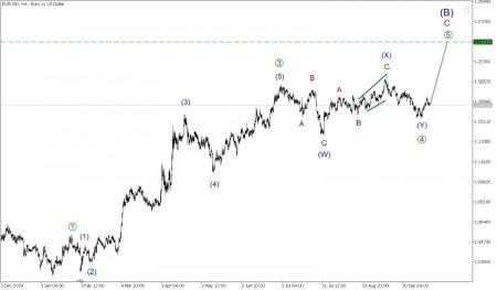 FxSignal Вчера, 20:09 2 Аналитика, прогнозы валютного рынкаРынок по Евродоллару в долгосрочной перспективе может формировать крупную бычью коррекция (B), которая принимает форму стандартного зигзага A-B-C. На сегодняшний день полностью завершены только первые две его части - импульс A и коррекция B. На последнем участке графика мы можем наблюдать развитие бычьей волны C, которая, по всей видимости, принимает форму импульса. На текущий момент завершены первые четыре его части - подволны [1]-[2]-[3]-[4]. В процессе построения ,бычья финальная подволна [5]. Большая вероятность, что быки внутри волны [5] смогут отправить рынок в область уровня 1.219. На указанной отметке величина крупной импульсной волны [5] составит 50% по расширению Фибоначчи от предыдущей импульсной волны [3]. Таким образом, при продолжении роста, стоит рассмотреть открытие длинных позиций с текущего уровня, с целью забрать прибыль на указанной отметке. После достижения уровня 1.219, ожидается смена тренда, а именно ожидается развитие финального медвежьего импульса (C). В текущей ситуации рекомендуется рассматривать открытие длинных позиций. Торговые рекомендации: Buy 1.165, takeprofit 1.219.
