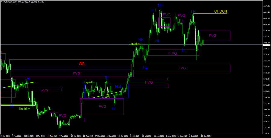 Торговые рекомендации по Эфиру(Ethereum) на 21 октября по системе ICT.