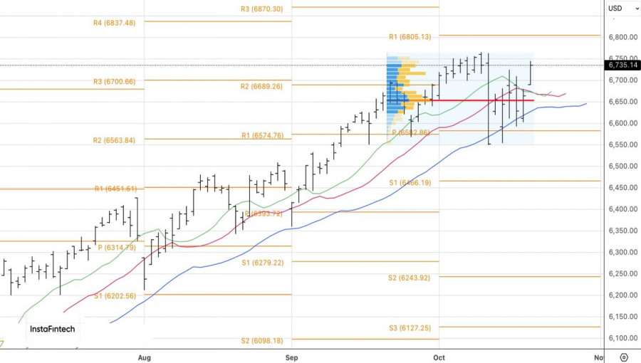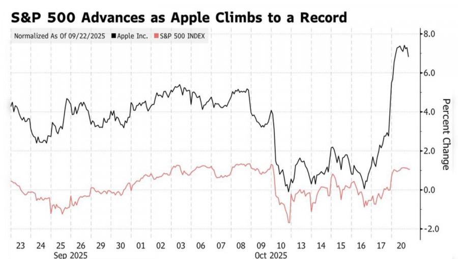 За первую неделю прогнозы прибыли превзошли 76% отчитавшихся компаний. Среднее значение показателя составляет 68%, за предыдущий квартал – 73%. Эмитенты S&P 500 начинают за здравие, а взлет акций Apple на сообщениях о впечатляющем росте продаж моделей iPhone в текущем году потянул за собой вверх весь рынок. Капитализация компании выросла до $3,83 трлн. По этому показателю она обошла Microsoft и занимает второе место в мире после NVIDIA.Динамика Apple и S&P 500Масла в огонь ралли широкого фондового индекса всеми силами пытается подбросить Белый дом. Директор Национального экономического совета Кевин Хассетт заявил, что шатдаун может закончиться на этой неделе. Министр финансов Скотт Бессент сообщил, что вылетает в Малайзию для переговоров с китайской делегацией. Дональд Трамп уверил, что запланированная через две недели встреча с Си Цзиньпином в Южной Корее состоится. Американская администрация дает понять, что открыта для заключения сделок. И рынок акций опирается на это. Пусть октябрь оправдывает статус самого волатильного месяца года, однако желание инвесторов выкупать провалы доказывает, что коррекция S&P 500 будет длиться недолго. Рынок всерьез напугался, когда Дональд Трамп объявил о 100%-х тарифах. Однако постепенно страх уступает место жадности. Об этом сигнализирует падение индекса волатильности VIX.Динамика индекса страха VIXПо мнению Morgan Stanley, чтобы риски коррекции S&P 500 устремились к нулю, требуется выполнение двух условий. Стабильно сильный сезон корпоративной отчетности за третий квартал и заключение торгового соглашения между США и Китаем. Инвесторы с нетерпением ожидают релиза данных по инфляции в США за сентябрь, который должен в скором времени увидеть свет. Пусть и с задержкой из-за отключения американского правительства. Ожидается ускорение как потребительских цен, так и базовой инфляции. На первый взгляд, это плохая новость для широкого фондового индекса. Однако инвесторы наверняка выкупят провал, так как ФРС дает понять, что в любом случае будет снижать ставку по федеральным фондам на октябрьской встрече FOMC.Технически на дневном графике S&P 500 имел место выход котировок из диапазона краткосрочной консолидации. Прорыв ее верхней границы вблизи отметки 6720 позволил сформировать лонги. Для их наращивания широкий фондовый индекс должен закрепиться выше. При таком раскладе шансы на достижение ранее установленных таргетов на 6800 и 6920 возратут.Материал предоставлен компанией InstaForex - www.instaforex.com