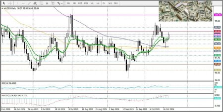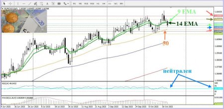 А с технической точки зрения, индекс относительной силы на дневном графике нейтрален, цены опустились ниже слияния 9-ти м14-ти-дневных ЕМА, найдя поддержку на уровне 1,6280, ниже которого следующая поддержка находится на уровне 1,6250. Ключевым уровнем для дальнейшего снижения является уровень 1,6166 ниже круглого 1,6200. Не удержав его, у быков не останется шанса.