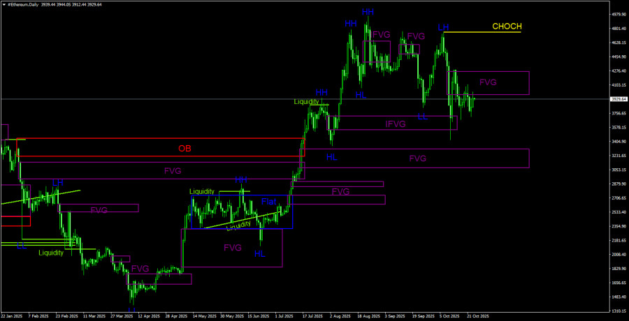 Торговые рекомендации по Эфиру(Ethereum) на 25 октября по системе ICT.