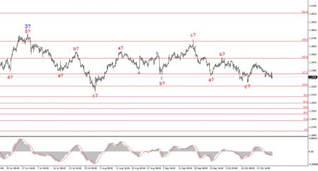 Курс инструмента GBP/USD в течение текущей недели снизился на 120 базовых пунктов. Коротко пройдемся по наиболее важным событиям. Уровень британской инфляции за сентябрь оказался ниже ожиданий рынка, что немного повысило шансы на еще один раунд смягчения денежно-кредитной политики BoE до конца года. Однако, на мой взгляд, эти шансы остаются крайне невелики, так как инфляция в Великобритании составляет на данный момент 3,8%, что очень много. Банк Англии в этом году провел три раунда смягчения, а инфляция, тем временем, растет. Каждый новый раунд снижения процентной ставки будет означать, что инфляция вырастет еще сильнее. А контроль над инфляцией является одной из главных задач практически для любого центрального банка. В том же месяце инфляция в США составила 3%, что тоже ниже ожиданий рынка. И тоже вызвало усиление «голубиных» ожиданий на следующие три встречи ФРС. Однако здесь начинаются вопросы. Если инфляция в Америке растет темпами ниже, чем ожидает рынок и опасаются экономисты, то почему спрос на валюту США растет, а не снижается? Впрочем, этим вопросом я задаюсь уже примерно месяц, так как весь список негативных для доллара факторов может занять полный лист A4. Исходя из всего вышесказанного, я считаю, что рынок в данное время благосклонно относится к валюте США, но покупать доллар сейчас морально и психологически очень сложно. Участники рынка по непонятным причинам готовы покупать доллар, но такие решения могут обернуться серьезными убытками в будущем. Поэтому, как в поговорке, «и хочется, и колется». Предполагаемая волна 4 может завершить свое построение около 31-й и 30-й фигур, но ее предполагаемая волна с уже сейчас принимает нечитаемый и сложный вид. Напомню, что лучше всего работать по простым и понятным структурам, а не по коррекционным, которые к тому же постоянно усложняются.Общие выводы.