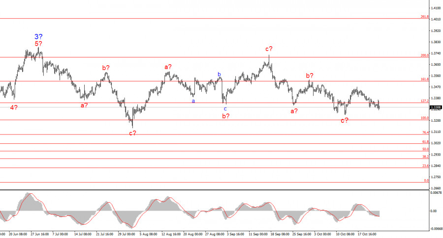 Исходя из проведенного анализа EUR/USD, я делаю вывод, что инструмент продолжает построение повышательного участка тренда. Сейчас на рынке сложилась пауза, но политика Дональда Трампа и ФРС остаются весомыми факторами падения американской валюты. Цели текущего участка тренда могут простираться вплоть до 25-й фигуры. В данное время мы можем наблюдать построение коррекционной волны 4, которая принимает очень сложный и протяженный вид. Следовательно, в ближайшее время я по-прежнему рассматриваю только покупки. До конца года я жду повышения евровалюты к отметке 1,2245, что соответствует 200,0% по Фибоначчи.Волновая картина по GBP/USD: