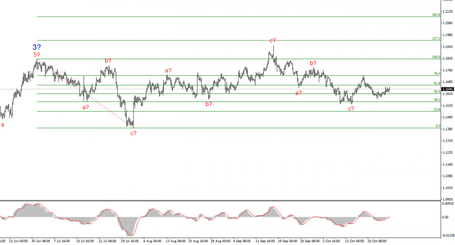 Исходя из проведенного анализа EUR/USD, я делаю вывод, что инструмент продолжает построение повышательного участка тренда. Сейчас на рынке сложилась пауза, но политика Дональда Трампа и ФРС остаются весомыми факторами падения американской валюты. Цели текущего участка тренда могут простираться вплоть до 25-й фигуры. В данное время мы можем наблюдать построение коррекционной волны 4, которая принимает очень сложный и протяженный вид. Следовательно, в ближайшее время я по-прежнему рассматриваю только покупки. До конца года я жду повышения евровалюты к отметке 1,2245, что соответствует 200,0% по Фибоначчи.
