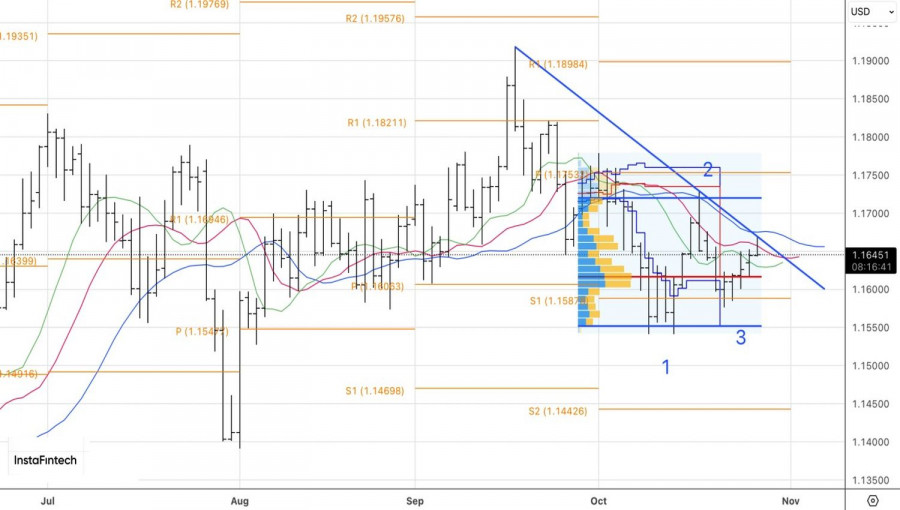 «Быков» не впечатляет твердая уверенность большинства экспертов Bloomberg в окончании цикла монетарной экспансии ФРС. Около 17% респондентов Bloomberg ожидают повышения ставки по депозитам в 2026. Не помогает и позитивная статистика по деловой активности валютного блока и немецкому бизнес-доверию. Инвесторы с опаской смотрят на предстоящий релиз данных по ВВП валютного блока за третий квартал. Ожидается расширение экономики на 0,1% кв/кв. Рад бы в рай, да грехи не пускают. Несмотря на позитив от европейской макростатистики и ожидания «ястребиной» риторики Кристин Лагард по итогам октябрьского заседания Управляющего совета, у евро остается ахиллесова пята – политика Франции. Парламент может вынести очередной вотум недоверия правительству Себастьена Лекарню, если не будет одобрено предложение социалистов о повышении налогов на богатых. За сокращение дефицита бюджета кому-то нужно заплатить. Неужели это будут бедные?