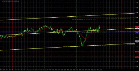 Валютная пара EUR/USD в течение вторника вновь торговалась с минимальной волатильностью, хотя ей всем чем мог помогал британский фунт. Британская валюта вчера рухнула вниз из-за очередных боголепных заявлений Канцлера Рэйчел Ривз, а вместе с ней начала падать и евровалюта. Однако евро очень быстро пришел в себя, а трейдеры вспомнили, что проблемы Великобритании – это проблемы британского фунта, а не евро. В итоге, мы увидели сначала резкое падение котировок, а потом такой же резкий рост. Однако это «резкое падение» – это 40 пунктов. А практически все движения дня вновь прошли в диапазоне 1,1604-1,1666. Макроэкономический фон в Евросоюзе и США вновь фактически отсутствовал. В Германии был опубликован индекс потребительской уверенности, который оказался по итогам ноября ниже самых пессимистичных прогнозов, но мы считаем, что всем очевидно – не этот индекс стал причиной падения евро в первой половине дня. С технической точки зрения, восходящая тенденция на часовом ТФ сохраняется после сильной и длительной коррекции. Мы сформировали новую линию тренда, но европейская валюта по-прежнему абсолютно не спешит расти, а рынок – торговать. На 5-минутном ТФ рассматривать торговые сигналы вновь не имело никакого смысла, так как все движения дня проходили в области шириной в 60 пунктов, внутри которой пролегает 4 уровня и 2 линии. Как только формировался определенный сигнал, цена тут же упиралась в новое сопротивление.Советуем ознакомиться с другими статьями автора: