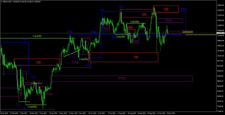 Торговые рекомендации по Биткоину(Bitcoin) на 29 октября по системе ICT.