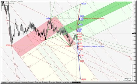 - уровень поддержки 0.9315 на верхней границе канала 1/2 Median Line вил младшего операционного масштаба Minute-h4.Восходящее движение.При совместном пробое контрольной линии UTL (уровень сопротивления 0.9345) вил старшего операционного масштаба Minor-Daily и ISL38.2 Minute-h4 (0.9360) станет актуальным развитие движения этого кросс инструмента в зоне равновесия (0.9360 - 0.9400 - 0.9445) вил младшего операционного масштаба Minute-h4 с перспективой достижения maximum 0.9454 от 18 августа 2025 года и предупредительной линии UWL100.0 Minor-Daily (0.9475).Нисходящее движение.При пробое уровня поддержки 0.9315 движение Euro vs Swiss Franc продолжится в канале 1/2 Median Line (0.9315 - 0.9295 - 0.9270) вил младшего операционного масштаба Minute-h4 с вариантом достижения данном валютным инструментом целей:- начальная линия SSL Minute-h4 (0.9235);