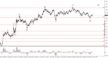 Курс инструмента EUR/USD в течение среды немного снизился. В очередной раз мы сталкиваемся с низкой амплитудой движения и практически полным отсутствием желания у рынка двигаться в любую сторону. Такая картина наблюдается уже несколько месяцев подряд, в течение которых инструмент движется фактически горизонтально, чередуя коррекционные наборы волн. Таким образом, отсутствие движений в среду не выбивается из осенней меланхолии рынка. Особенно, если учесть отсутствие новостного фона. Единственной новостью дня стал индекс потребительских цен в Германии, который по итогам октября составил в финальной оценке 2,3% в годовом исчислении, как и ожидалось, как и в предварительной оценке. Участники рынка на этот отчет даже внимания не обратили. Американский «шатдаун» плавно идет к своему завершению, но и эта информация не слишком беспокоит валютный рынок. Инструмент предположительно начал построение нового повышательного набора волн, но повышение европейской валюты очень слабое, и это очень смущает. Рынок сейчас находится в полной прострации. Он привык принимать решения, отталкиваясь от ключевых американских отчетов. А их нет. Даже если «шатдаун» завершится на этой неделе, Бюро статистики США потребуется некоторое время, чтобы провести опросы, собрать данные и сформировать их в отчеты. О точности этих отчетов и их актуальности говорить уже не приходится, но они могут немного привести рынок в чувство.Общие выводы.