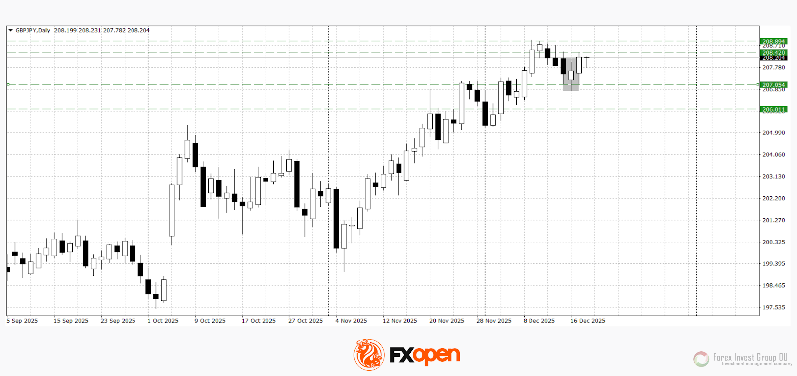 GBP/USD заметно колеблется в узком диапазоне перед публикацией решения, отражая баланс между давлением на фунт из-за ожидаемого смягчения и общей рыночной осторожностью в преддверии заседания Банка Англии. Консолидация наблюдается также в кроссе GBP/JPY, хотя пара удерживается выше ключевых уровней около 208.00.