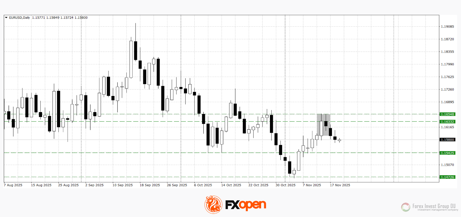 Инвесторы концентрируются на показателях инфляции в еврозоне и Великобритании, публикация которых станет ключевым ориентиром для оценки перспектив монетарной политики ЕЦБ и Банка Англии. Дополнительным фактором неопределенности остается восстановление потока американской макростатистики после недавнего завершения самого длительного шатдауна в истории США. Рынок ожидает обновленные отчеты по занятости и инфляции, которые могут скорректировать ожидания по действиям Федеральной резервной системы в декабре. До публикации этих данных доллар сохраняет стабильность, что создает дополнительное давление на европейские валюты.