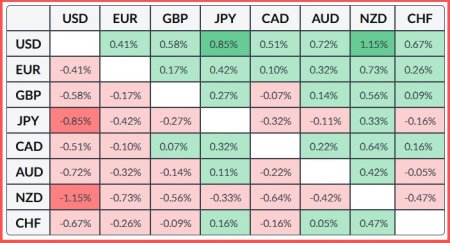 А с технической точки зрения, осцилляторы на дневном графике отрицательны, подтверждая негативный прогноз, но стоит обратить внимание, что индекс относительной силы близок к зоне перепроданности, что говорит о некоторой консолидации, перед следующим движением.Ниже приведена таблица с процентным изменением курса NZD - новозеландского доллара по отношению к основным валютам. Сегодня новозеландский доллар показал наибольшую силу по отношению к японской иене.Материал предоставлен компанией InstaForex - www.instaforex.com