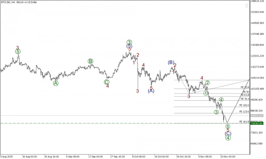 BTC/USD 21 ноября. Завершение коррекции стоит ждать к отметке 79838