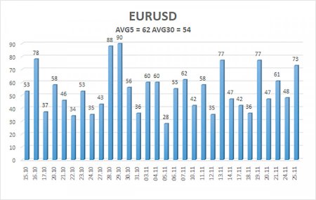 Обзор пары EUR/USD. 26 ноября. Заборчики и елочки продолжаются.