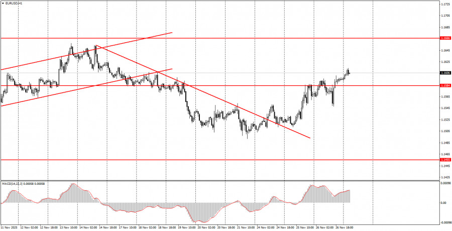 Обзор пары EUR/USD. 27 ноября. Рост евро вновь откладывается.