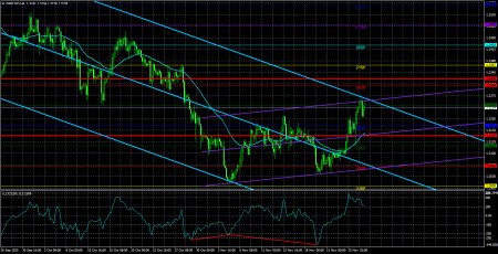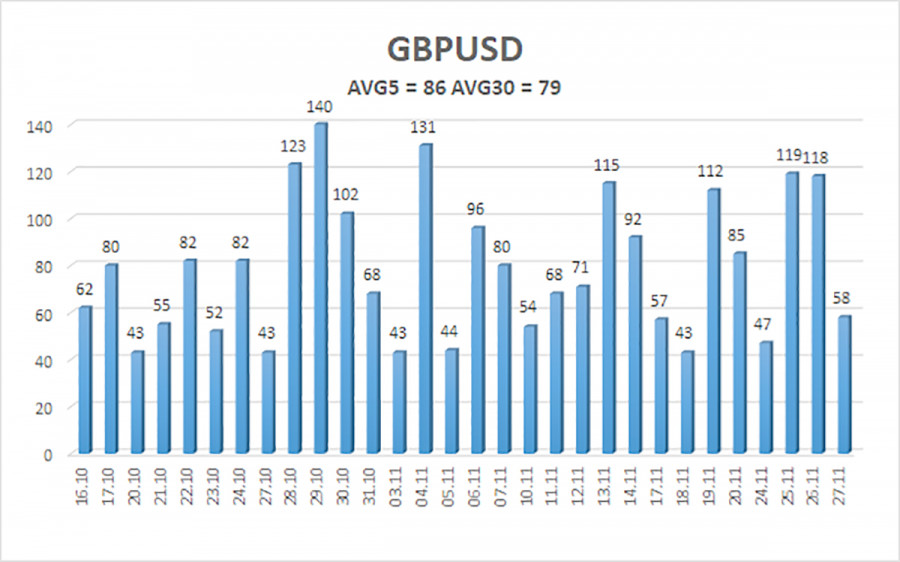 Валютная пара GBP/USD в течение среды и четверга продолжала восходящее движение, которое было спровоцировано публикацией бюджета в Великобритании. Трейдеры позитивно восприняли информацию о повышении ряда налогов на Туманном Альбионе, так как они позволят избежать дефицита бюджета и ряда других финансовых проблем. Однако мы все же не можем обойти стороной один важный вопрос – соответствие ожиданий британских избирателей с реальностью. Напомним, что ключевые разногласия по формированию бюджета заключались в том, что лейбористы обещали в ходе предвыборной кампании не повышать налоги. Однако им досталось такое прекрасное «наследие» после 14 лет правления консерваторов, что оказалось – не повышать налоги нельзя. Именно с этого и началась «черная полоса» для британского фунта. И евро, и фунт спокойно торговались внутри боковых каналов на дневном ТФ, но фунт в последние два месяца падал гораздо сильнее евро. Именно благодаря перипетиям с британским бюджетом. Несколько выступления Рэйчел Ривз провоцировали обвал фунта стерлингов, так как глава Казначейства никак не могла определиться с тем, что делать: повышать налоги и проиграть следующие выборы или же не повышать налоги и смириться с «дырой» в бюджете. Помимо того, что было повышено приблизительно 10 различных налогов, ключевое место занимал подоходный налог. На наш взгляд, именно этот налог является наиболее крупным источником дохода в бюджет, так как затрагивает абсолютно всех граждан страны. Повысить его Рэйчел Ривз не возжелала, но при этом платежи по этому налогу все равно увеличатся. Госпожа Ривз сделала ход конем. Вместо повышения ставки налога, она «заморозила» лимиты для налоговых групп. Что это означает? Не секрет, что в зависимости от общего дохода британцы платят налоги по разным ставкам. Чем выше доход, тем выше налоговая ставка. Поэтому «заморозка» лимитов, разделяющих налоговые ставки, фактически означает, что рост заработных плат насильно переведет многих британцев от меньшей ставки налога к большей. Темпы роста заработных плат в Великобритании в последний год стабильно держатся около 5%. Представьте себе, сколько в Британии налогоплательщиков, находящихся в «пограничной зоне». Все они в этом году или в следующем году перейдут в более богатую категорию граждан и будут платить налоги по более высокой ставке. Однако для трейдеров решение проблемы с бюджетом – это позитивная новость, поэтому британский фунт два дня подряд находился в восходящем движении. Мы продолжаем считать, что у пары GBP/USD имеется гораздо больше глобальных фундаментальных факторов для роста, чем британский бюджет. Но в последнее время быки на рынке проявляли только пассивность. Поэтому даже такой рост, как сейчас – за счастье. Следует напомнить, что европейская валюта могла начать новый виток глобального восходящего тренда. Если так, то и британский фунт мог начать новый виток глобального восходящего тренда. А причин у доллара падать – не занимать. Средняя волатильность пары GBP/USD за последние 5 торговых дней составляет 86 пунктов. Для пары фунт/доллар это значение является «средним». В пятницу, 28 ноября, таким образом, мы ожидаем движения внутри диапазона, ограниченного уровнями 1,3154 и 1,3326. Старший канал линейной регрессии направлен вниз, но только из-за технической коррекции на старших Т