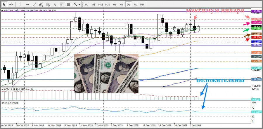 Дополнительное внимание стоит уделить геополитическим рискам, связанным с обострением ситуации между США и Венесуэлой. Последние военные удары и свержение президента Николаса Мадуро усилили неопределённость. Возможная дальнейшая эскалация событий может поддержать спрос на доллар как на защитный актив, что в свою очередь поддержат курс USD/JPY.