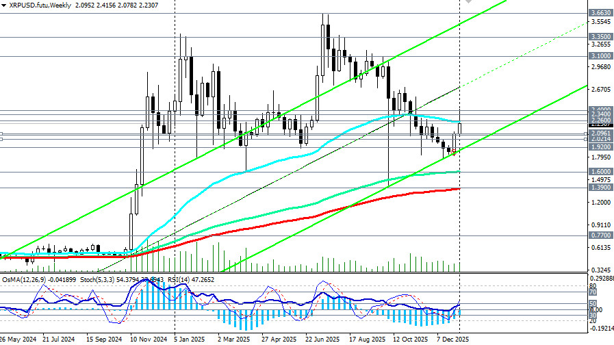 Несмотря на то что индекс «страха и жадности» переместился сегодня в нейтральную зону (52 из 100), инвесторы сегодня предпочитают выходить из рискованных активов крипторынка. Так, пара BTC/USD снижается с достигнутого в начале недели локального максимума вблизи отметки 94700.00 и торгуется в первой половине американской торговой сессии вблизи отметки 91450.00, двигаясь в сторону важного краткосрочного уровня поддержки 90950.00 (ЕМА200 на 1-часовом графике BTC/USD). Будучи первой цифровой валютой и своего рода локомотивом всего крипторынка, биткоин своей динамикой, можно сказать, отражает динамику и большей части крипторынка, по крайней мере, динамику топ-10 альткоинов. Если же сделать беглый графический и визуальный анализ, то, если пара BTC/USD вплотную приблизилась к важной краткосрочной зоне поддержки 91500.00 (ЕМА144 на 1-часовом графике) - 90950.00, то у пары XRP/USD есть достаточно значительное (в краткосрочном периоде) пространство для снижения к аналогичной зоне поддержки 2.1390 (ЕМА144 на 1-часовом графике XRP/USD) – 2.0970 (ЕМА200 на 1-часовом графике). В настоящий момент участники рынка ждут публикации (в 15:00 GMT) ключевых макро данных, которые могут существенно повлиять на динамку доллара, а значит и всего финансового рынка, в том числе цифрового. Если отчеты ISM и JOLTS (см. наш сегодняшний обзор «Доллар: ADP, PMI ISM, JOLTS, NFP – до и после») выйдут с сильными показателями, то стоит ждать укрепления USD и падения пары XRP/USD в сторону выделенных нами выше уровней поддержки. В противном случае (при негативном для доллара раскладе и в случае слабых макро данных) доллар, скорее всего, возобновит снижение, а пара XRP/USD получит возможность для возобновления восходящей динамики. В этом случае пробой зоны сопротивления 2.3400 (ЕМА200 на дневном графике) – 2.4000 (максимум недели) выведет цену в зону среднесрочного бычьего рынка, создав также предпосылки для дальнейшего роста в рамках долгосрочного бычьего тренда. Самым же раним сигналом здесь может стать пробой уровня сопротивления 2.2600 (ЕМА50 на недельном графике). В то же время настроение на рынке может улучшиться на фоне растущей вероятности новых снижений процентной ставки ФРС в 2026 году. Не исключено, что появление новых сигналов о предстоящих действиях ФРС может стать импульсом для движения котировок. В основном же сценарии пробой сегодняшнего минимума 2.2045 может спровоцировать возобновление снижения в сторону ключевых уровней поддержки 1.6000 (ЕМА144 на недельном графике), 1.3900 (ЕМА200 на недельном графике), отделяющих долгосрочный бычий рынок XRP/USD от медвежьего, с промежуточными целями на краткосрочных уровнях поддержки 2.1390, 2.0970, 2.0000, 1.9200. открыть торговый счет + зарегистрироваться в системе копирования сигналов + инвестировать в ПАММ-системеМатериал предоставлен компанией InstaForex - www.instaforex.com