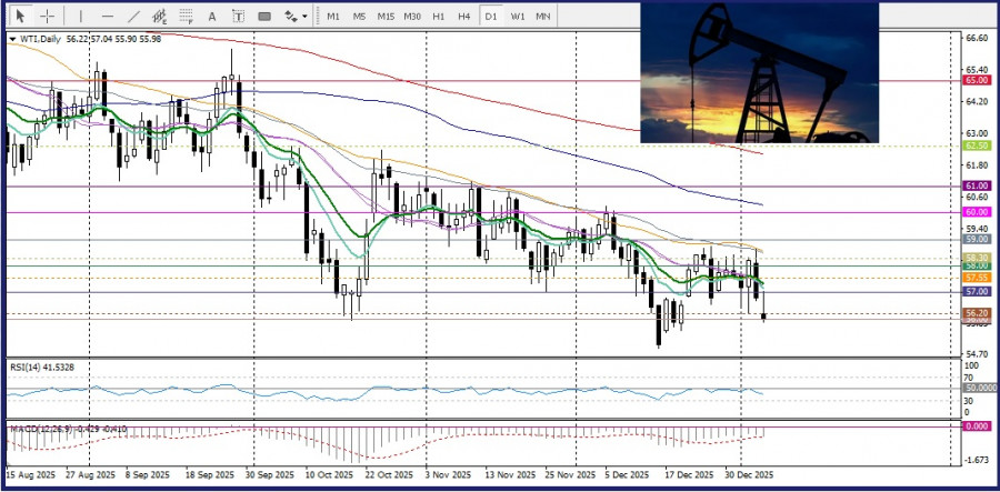 Канадский доллар, напротив, испытывает давление со стороны товарного рынка, прежде всего из-за снижения цен на нефть, которая остается ключевым экспортным и бюджетным драйвером для экономики Канады. Котировки нефти откатываются вниз на фоне усиления опасений по поводу избыточного предложения после комментариев президента США Дональда Трампа о возможных поставках от 30 до 50 млн. баррелей венесуэльской нефти на американский рынок, что усиливает риск дополнительного перенасыщения предложения.Этот фактор традиционно негативно отражается на валюте нефтяной экономики и ограничивает потенциал укрепления канадского доллара против доллара США.
