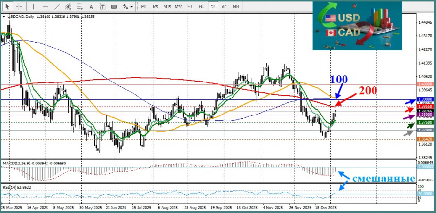На момент написания пара USD/CAD торгуется выше круглого уровня 1,3800 в районе 1,3827, прибавляя около 0,11% за день на фоне умеренного восстановления доллара США и сохраняющейся слабости канадского доллара. Это движение отражает реакцию рынка на смешанный набор макроэкономических данных из США при одновременно неблагоприятном внешнем фоне для сырьевых валют.