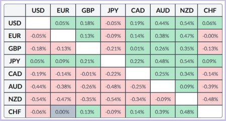 Сопротивление у пары – это 9-дневная ЕМА на уровне 1,3470 перед круглым уровнем 1,3500.В таблице ниже показано процентное изменение курса доллара США по отношению к основным валютам на сегодня. Доллар США показал самый сильный рост по отношению к новозеландскому доллару.Материал предоставлен компанией InstaForex - www.instaforex.com