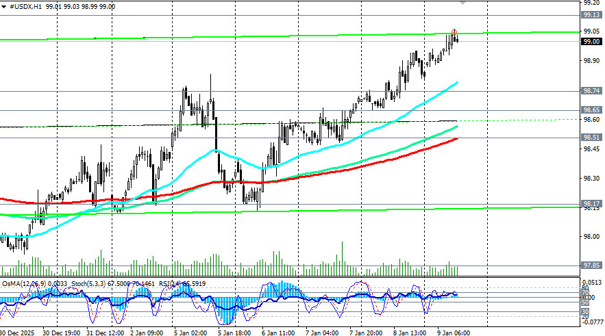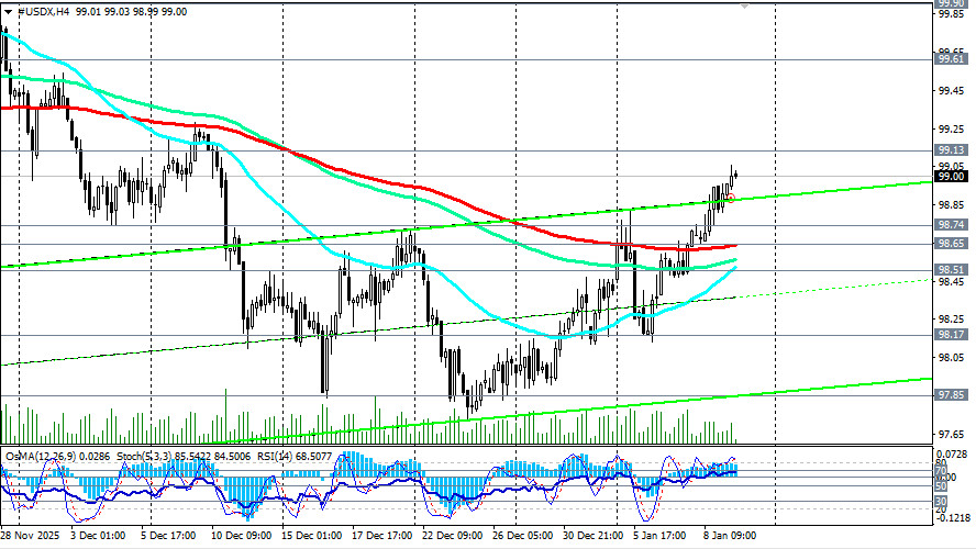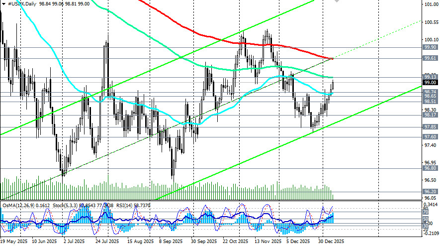 Доллар продолжает укрепляться в пятницу в то время, как его индекс USDX достиг накануне американской торговой сессии нового максимума с 11 декабря вблизи отметки 99.05, немного не дотянув до важного среднесрочного уровня сопротивления 99.13 (144-периодная скользящая средняя на дневном графике). Несмотря на сохраняющиеся ожидания смягчения монетарной политики Федерального резерва, доллар удерживает достигнутые позиции благодаря стабильному спросу инвесторов на американские активы и накануне выхода (в 13:30 GMT) ключевых экономических данных по занятости в США. Основные факторы влияния: - Голубиная позиция ФРС. Трейдеры предполагают дальнейшее снижение процентных ставок, что снижает привлекательность доллара в долгосрочной перспективе. - Отчет NFP. Данные по количеству рабочих мест вне сельского хозяйства (Non-Farm Payrolls) оказывают, как правило, значительное влияние на волатильность доллара. Экономисты ожидают увеличение числа рабочих мест на 60 тыс. в декабре, однако это ниже ноябрьского значения (+64 тыс.). Уровень безработицы может опуститься до 4,5%, а инфляция заработной платы оценивается в 3,6%, что свидетельствует о постепенном восстановлении экономики: ожидаемый рост среднечасовой оплаты труда оказывает поддержку экономике США и усиливает давление на инфляцию. Ранее на неделе Исследовательский институт Automatic Data Processing (ADP) опубликовал свой ежемесячный отчет о изменении занятости за декабрь, согласно которому число рабочих мест в частном секторе США увеличилось на 41000 в декабре. Это хоть и ниже ожидаемых 47000, но рост занятости в частном секторе показывает положительную тенденцию восстановления рынков труда, говорят экономисты. В то же время, отчеты по вакансиям JOLTS оказались менее оптимистичными: число открытых позиций снизилось до 7,146 млн с 7,449 млн месяцем ранее, причем этот показатель оказался ниже консенсус-прогноза в 7,6 млн. Порадовал инвесторов индекс деловой активности в сфере услуг ISM, поднявшись до уровня 54,4 (против ожидаемых 52,3 и ноябрьского значения в 52,6). При этом, повышение индекса занятости для сферы услуг до 52 подтверждает стабилизацию деловой активности. В то же время необходимо учитывать, что отчет Минтруда США с данными за декабрь выходит на фоне серьезных тревог относительно состояния американского рынка труда и значительных расхождений внутри руководства ФРС. Эти противоречия касаются уровня необходимой мягкости денежно-кредитной политики и возможных последствий для экономики. В декабре, как мы знаем, ФРС снизила процентную ставку на 0,25%, однако протокол данного заседания продемонстрировал серьезные разногласия членов комитета по вопросам кредитно-денежной политики. Инвесторы же ожидают, что ФРС вновь снизит стоимость заимствований в марте и еще позже в этом году. Напомним, что Трамп всячески оказывает давление на руководителя ФРС Пауэлла, который, по мнению Трампа, утверждает неверные решения руководства ЦБ. Министр финансов США Скотт Бессент заявил в четверг, что снижение процентных ставок — это последний оставшийся фактор, который необходимо реализовать для еще более сильного экономического роста, и также призывал ФРС к немедленному снижению процентных ставок. В то же время совокупность факторов, включая ухудшение показателей занятости и устойчивый высокий уровень инфляции, создает существенные трудно