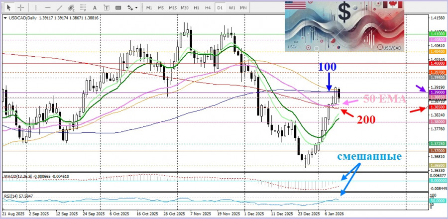 Председатель Федеральной резервной системы Джером Пауэлл подчеркнул, что центральный банк устанавливает процентные ставки, основываясь на наилучшей оценке того, что будет служить интересам общества, а не из политических предпочтений президента. Этот акцент на независимости Федеральной резервной системы усилил опасения рынка относительно политического давления на ФРС, что спровоцировало падение индекса доллара США от цен, который наблюдались ещё 5 декабря, и повторно зафиксировались в пятницу, и оказало дополнительное давление на пару USD/CAD.Одновременно президент США Дональд Трамп в воскресенье заявил, что рассматривает широкий спектр ответных шагов на беспорядки в Иране, включая вероятность применения военной силы. Данные заявления прозвучали на фоне продолжающегося российско-украинского конфликта и поддерживают общий уровень геополитической напряженности, что в сочетании со снижением ожиданий более агрессивного смягчения политики ФРС способно стать фактором поддержки для доллара США.