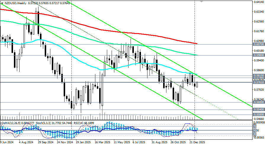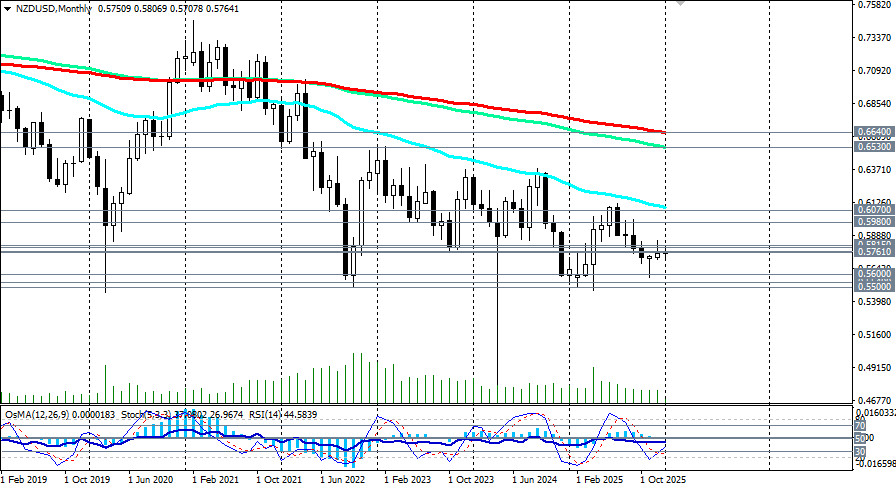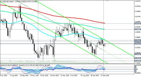 В последние недели пара NZD/USD демонстрировала заметную волатильность: после снижения и достижения на прошлой неделе двухмесячных минимумов около 0.5708 котировки предприняли попытку коррекции и перед открытием американской торговой сессии понедельника добрались до зоны сопротивления (в краткосрочном периоде) 0.5761–0.5764 (200-периодные скользящие средние на 4- и 1-часовом графиках цены), отметили мы в нашем сегодняшнем фундаментальном анализе и обзоре «NZD/USD: текущая ситуация и перспективы». Несмотря же на сегодняшний рост, доминирует нисходящая динамика. С этой точки зрения, вблизи зоны сопротивления 0.5761–0.5764 и достигнутых уровней вероятен отбой и возобновление снижения. Пробой же сегодняшнего минимума 0.5722 закрепление ниже 0.5700 создаст предпосылки для более глубокой коррекции в сторону нижней границы нисходящего канала на недельном графике, проходящей между отметками 0.5500 и 0.5400. В альтернативном сценарии пробой 0.5770 может спровоцировать дальнейший коррекционный рост в сторону ключевых уровней сопротивления 0.5798, 0.5800, 0.5815, отделяющих среднесрочный медвежий рынок NZD/USD от бычьего. С этой точки зрения, зона 0.5790–0.5820 может стать новой зоной продаж пары. Сценарий на снижение может стать особенно актуальным в случае сильных данных по инфляции из США, которые ожидаются к публикации во вторник и среду (см. наш сегодняшний обзор «Доллар: ключевые драйверы и перспективы»). - Ближайшая поддержка: 0.5757 (ЕМА144 на 1-часовом графике), 0.5744 (ЕМА200 на 15-минутном графике), ниже — 0.5700 и 0.5650 - Ближайшее сопротивление: 0.5766 (ЕМА144 на 4-часовом графике), далее – 0.5798, 0.5800, 0.5815Перспективы и сценарии развития 1. Базовый сценарий (нейтрально? бычий, недельный/месяц): если политический шум вокруг ФРС продолжит давить на доллар, а макро статистика США не даст убедительных сигналов для ужесточения, NZD/USD имеет потенциал роста к зоне 0.5800–0.5850 в короткой перспективе. РБНЗ, удерживая нейтральную позицию, не будет препятствовать этому движению.2. Бычий сценарий для NZD (быстрое укрепление): усиление ожиданий о преждевременных снижениях ставки ФРС (на фоне замедления инфляции/рынка труда) плюс позитивные данные из Новой Зеландии (лучшие ожиданий CPI или рост экспорта) — возможен прорыв 0.5850 и тест 0.6000. 3. Медвежий сценарий (усиление USD): «жёсткие» данные по инфляции или занятости в США, подтверждающие дальнейшую необходимость удержания высоких ставок ФРС, или рост геополитической напряжённости, увеличивающий спрос на доллар как безопасный актив, приведут к возобновлению падения к 0.5700, 0.5650 и ниже. 4. «По риску»: политические события в США (включая развитие дела против главы ФРС) создают повышенную вероятность внезапных перемен в настроениях рынка. В таких ситуациях рынок может резко реагировать на новости вне стандартной реакции на макро статистику. Общие рекомендации - Для краткосрочных операций следите за выпуском ключевых новостей и избегайте открытия крупных позиций непосредственно перед важной статистикой. - Для средне- и долгосрочных решений принимайте во внимание траекторию монетарной политики обеих стран и фундаментальные изменения в экономике Новой Зеландии (торговля, сырьё, инфляция). - Управляйте риском: стоп-лоссы и размер позиции должны учитывать повышенную волатильность, особенно в периоды политической и глобальной неопределённости, например, как в данный момент.