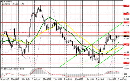 Вчера было образовано несколько точек входа в рынок. Давайте посмотрим на 5-минутный график и разберемся с тем, что произошло. В своем утреннем прогнозе я обращал внимание на уровень 1.3460 и планировал от него принимать решения по входу в рынок. Рост и формирование ложного пробоя в районе 1.3460 привели к точке входа на продажу фунта, что вылилось в падение пары примерно на 15 пунктов. Во второй половине дня активные действия продавцов в районе 1.3484 позволили войти в короткие позиции, что привело к снижению пары на 30 пунктов.Для открытия длинных позиций по GBP/USD требуется:Прежде чем разбирать техническую картину фунта давайте посмотрим, что произошло на фьючерсном рынке. В COT-отчете (Commitment of Traders) за 6 января наблюдался рост длинных и коротких позиций. Вероятность снижения процентных ставок в США довольно сильно ослабла после последних данных по рынку труда США, но новым риском для доллара стало резкое давление администрации Трампа на ФРС, что позволяет рассчитывать на сохранение проблем у доллара и рост британского фунта в краткосрочно перспективе. При этом политика Банка Англии остается сдержанной, что указывает на их четкие планы по дальнейшей борьбе с инфляцией, хотя особой уверенности покупателям фунта в последнее время это не придает. В последнем COT-отчете указано, что длинные некоммерческие позиции выросли на 6 994 до уровня 76 486, тогда как короткие некоммерческие увеличились на 4 325 до уровня 107 024. В итоге спрэд между длинными и короткими позициями вырос на 936.Сегодня в первой половине дня ожидается выступление губернатора Банка Англии Эндрю Бэйли. Его речь может касаться будущей политики Банка Англии, так что всплеск волатильности пары GBP/USD будет обеспечен. В случае голубиной позиции пара GBP/USD может скорректироваться, чем и собираюсь воспользоваться. Формирование ложного пробоя в районе новой поддержки 1.3448 станет поводом на открытие длинных позиции с целью возврата GBP/USD к сопротивлению 1.3484, выбраться выше которого вчера так и не удалось. Прорыв и обратный тест сверху вниз этого диапазона дадут шанс на дальнейшее восстановление GBP/USD, что приведет к новым покупкам и позволит добраться до 1.3514. В случае выхода выше и этого диапазона можно говорить о рывке к 1.3539, где собираюсь фиксировать прибыль. При сценарии падения GBP/USD и отсутствия покупателей в районе уровня 1.3448, медведи попытаются добиться более крупной распродажи. Это также приведет к снижению в район следующей поддержки 1.3417. Формирование там ложного пробоя будет подходящим вариантом по входу в рынок. Открывать длинные позиции по GBP/USD сразу на отскок можно от 1.3392 с целью коррекции в 30-35 пунктов внутри дня.Для открытия коротких позиций по GBP/USD требуется:Давления на фунт вчера так и не вернулось. В случае продолжения восходящей тенденции после выступления Бэйли, к продажам присмотрюсь только во время формирования ложного пробоя в районе сопротивления 1.3484. Лишь это даст хорошую точку входа на продажу фунта с целью снижения к поддержке 1.3448, где проходят средние скользящие, играющие на стороне покупателей. Прорыв и обратный тест этого диапазона снизу вверх усилят давление на пару, дав медведям преимущество и еще одну точку входа на продажу с целью обновления 1.3417. Там ожидаю более активного проявления покупателей. Самой дальней целью медведей выступит минимум 1.3392, где буду фикс