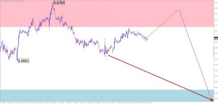 GBP/USD Анализ: На графике основной пары английского фунта стерлингов направление краткосрочного тренда с начала прошлого года задает алгоритм восходящей волны. В ее структуре на момент анализа развивается откат в рамках заключительной части (С). Котировки приближаются к нижней границе зоны потенциального разворота. Прогноз: В первой половине недели ожидается продолжение бычьего направления движения цены английского фунта, вплоть до контакта с границами сопротивления. Далее вероятен боковой настрой колебаний вдоль границ зоны. Ближе к выходным можно рассчитывать на повышение волатильности, смену направления и возобновление ценового снижения. Ход вниз возможен не далее расчётной поддержки. Зоны потенциального разворота Сопротивление: - 1.3510/1.3560 Поддержка: - 1.3350/1.3300 Рекомендации: Покупки: имеют малый потенциал и могут привести к убыткам. Продажи: могут использоваться после завершения отката вверх и появления в районе зоны сопротивления подтвержденных сигналов разворота. AUD/USD Анализ: На графике австралийской валюты в паре против американского доллара наибольший интерес вызывает незавершённая бычья волновая модель от 30 сентября прошлого года. Цена достигла нижней границы потенциально-разворотной зоны крупного ТФ. В структуре формируется откат в рамках завершающей части (С). Прогноз: На протяжении ближайших суток ожидается продолжение подъёма, с дальнейшим переходом движения цены в боковую плоскость вдоль границ сопротивления. После возможного давления на эту зону далее можно ждать формирование разворота. Начало снижения цены более вероятно к концу недели. Размах хода возможен не ниже расчетной поддержки. Зоны потенциального разворота Сопротивление: - 0.6720/0.6770 Поддержка: - 0.6610/0.6560 Рекомендации: Покупки: из-за малого потенциала могут стать убыточными. Продажи: после появления в районе сопротивления соответствующих сигналов разворота могут использоваться дробным лотом в торговых сделках. USD/CHF Анализ: Котировки швейцарского франка на графике мажора с апреля прошлого лета продолжают формировать восходящую плоскость. В её структуре в последние месяцы развивается средняя часть (В). На момент анализа она не показывает завершенность. Цена зажата в узком горизонтальном коридоре между встречными зонами разного масштаба. Прогноз: На предстоящей неделе ожидается продолжение общего бокового вектора движения. В первые дни можно ждать откат вниз. После чего вероятен разворот и возобновление подъема цены. При смене курса не исключён кратковременный прокол нижней границы зоны поддержки. Зоны потенциального разворота Сопротивление: - 0.8110/0.8160 Поддержка: - 0.7890/0.7840 Рекомендации: Продажи: подобные сделки имеют малый потенциал и рискованны. Покупки: после появления в районе зоны поддержки соответствующих сигналов разворота могут использоваться в торговле. EUR/JPY Анализ: С конца февраля прошлого года на графике кроссовой пары евро/японская йена развивается восходящая волновая конструкция. На недельном масштабе графика эта волна дала начало очередному участку основного тренда. Котировки достигли нижней границы мощной потенциально-разворотной зоны. Готовых сигналов скорого разворота на графике не наблюдается. Прогноз: В первой половине предстоящей недели ожидается продолжение ценового роста, с достижением границ расчётного соп
