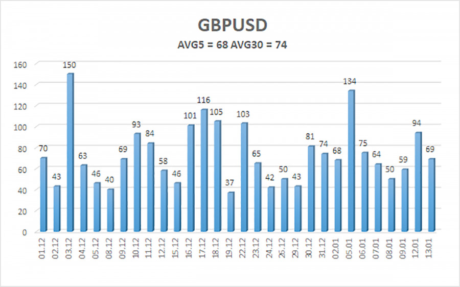 Валютная пара GBP/USD во вторник торговалась достаточно спокойно, а отчет по инфляции продемонстрировал пресное значение 2,7%. Как и месяцем ранее. Во времена первой каденции Трампа в Белом доме, мы регулярно использовали фразу «театр абсурда». Все, что происходит сейчас в США, очень похоже на какой-то иронично-фантастический роман. Это еще не Оруэлл, но уже близко к нему. Джером Пауэлл открыто заявляет о том, что на него оказывает давление президент США. Такого раньше не случалось ни разу, ибо председатель ФРС всегда предпочитал игнорировать оскорбления и критику президента США. Однако, когда к вам приходят с повесткой в суд, молчать становится достаточно тяжело. Напомним, что в прошлом году Трамп решил уволить представителя Монетарного комитета Лизу Кук. Если быть точнее, то Трамп просто написал в собственной социальной сети об увольнении члена Монетарного комитета. И у нас возникает только один вопрос. Почему Трамп таким же способом не разогнал сразу весь Комитет? Это, конечно, шутка, но весьма горькая для Джерома Пауэлла. Американские суды в данное время находятся даже не между двух огней, а между двумя пожарищами. С одной стороны, законодательство США, которое вроде бы должно исполняться в соответствии с тем, что написано в многочисленных законах. С другой стороны, Дональд Трамп – президент США, который, как правило, либо требует решения, противоречащего этим самым законами, либо же сам выступает фигурантом очередного разбирательства за явное превышение полномочий или нарушение закона. И суды вместо принятия очевидного и законного вердикта, просто затягивают время, что оказывается на руку Трампу. Два американских суда уже признали торговые пошлины Трампа незаконными, и что? Они были отменены? Верховный суд США должен был вынести вердикт по торговым пошлинам еще 9 ноября прошлого года! На дворе – середина января, близится новый «шатдаун», а Верховный суд оказывается не может понять, имел ли право Трамп вводить пошлины против половины государств мира, если в соответствующем законе нет ни одного упоминания пошлин. Абсурд и каламбур. К сожалению, Джером Пауэлл, которому остается доработать на должности главы ФРС всего несколько месяцев, тоже может попасть в театр абсурда и сыграть в одном из актов одну из главных ролей. Мы, конечно, не знаем, как составлялась смета на реконструкцию зданий ФРС, не знаем, что говорил Пауэлл в Конгрессе США, когда ему задавались вопросы о расходах, но разве все это важно? Иногда у нас складывается ощущение, что речь идет не о реконструкции государственного учреждения, а о ремонте частного дома самого Пауэлла за государственные средства. Возникает и еще один вопрос – а почему именно Пауэлл виноват в предполагаемом перерасходе бюджетных средств? Насколько мы знаем Пауэлл – председатель ФРС, а не прораб. Самое интересное заключается в том, что увольнение Пауэлла или даже его посадка за решетку ничего не изменит в вопросе влияния Трампа на монетарную политику ФРС. А если/когда изменит, доверие к американскому центробанку, некогда независимому и внушающему доверие во всем мире, упадет к уровням доверия к центробанку Никарагуа. Средняя волатильность пары GBP/USD за последние 5 торговых дней составляет 68 пунктов. Для пары фунт/доллар это значение является «средним». В среду, 14 января, таким образом, мы ожида