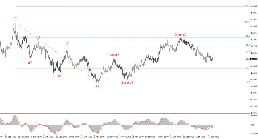 Анализ EUR/USD. 14 января. Чего ждет рынок? Пошлины Трампа помогли КитаюВолновая картина по EUR/USD: