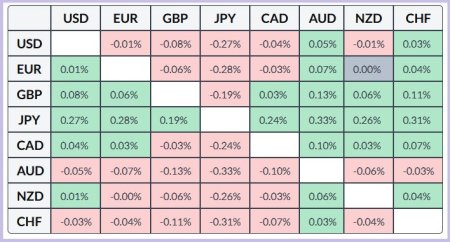 А с технической точки зрения осцилляторы на дневном графике ещё не перешли на отрицательную территорию, это говорит о том, что быки продолжают сопротивляться медведям. Основная поддержка у пары на уровне 0,7985 вблизи 100-дневной SMA. Если цены не удержатся, то быки начнут терять контроль. Сопротивлением оказался уровень 0,8030, выше которого пара упрётся в 200-дневную SMA.В таблице ниже представлена динамика процентного изменения доллара США против основных валют на текущий момент. Наибольшее укрепление доллара США наблюдается против австралийского доллара.Материал предоставлен компанией InstaForex - www.instaforex.com