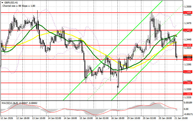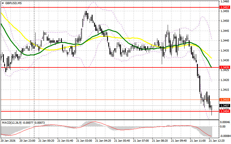 В своем утреннем прогнозе я обращал внимание на уровень 1.3426 и планировал от него принимать решения по входу в рынок. Давайте посмотрим на 5-минутный график и разберемся с тем, что там произошло. Снижение в район 1.3426 произошло, но до образования там точек входа в рынок дело не дошло, так что я остался бе сделок. На вторую половину дня техническая картина была пересмотрена.Для открытия длинных позиций по GBP/USD требуется: Фунт в моменте отреагировал ростом на данные о том, что годовая инфляция в Великобритании оказалась выше прогнозов экономистов, но затем вернулся к снижению в паре с долларом. Уверенность в том, что регулятор ничего не будет предпринимать после вышеуказанных данных не позволила развить сильное восходящее движение по фунту. Во второй половине дня акцент будет смещен на выступление президента США Дональда Трампа в Давосе, на котором он прояснит свою позицию по Гренландии и торговым пошлинам в отношении ЕС. Также выйдут данные по изменению объема незавершенных сделок по продаже жилья и изменению объема расходов в строительном секторе. В случае дальнейшего снижения GBP/USD в начале американских торгов, первого проявления покупателей жду в районе 1.3404. Только формирование там ложного пробоя даст точку входа в длинные позиции в расчете на восстановление к уровню 1.3429. Прорыв с обратным тестом сверху вниз этого диапазона приведут уже к новой точке входа в длинные позиции с перспективой выхода на 1.3457. Самой дальней целью окажется область 1.3489, где собираюсь фиксировать прибыль. Тест этого уровня приведет к развитию нового бычьего рынка. При сценарии снижения GBP/USD и отсутствия активности со стороны быков на 1.3404, давление на пару возрастет. В таком случае лишь формирование ложного пробоя в районе 1.3382 будет подходящим условием на открытие длинных позиций. Покупать GBP/USD сразу на отскок собираюсь от поддержки 1.3361 с целью коррекции в 30-35 пунктов внутри дня.Для открытия коротких позиций по GBP/USD требуется:Продавцы проявили себя, но пока дальнейший нисходящий потенциал под вопросом. Только мягкая позиция Трампа приведет к новой волне снижения GBP/USD. В случае бычьей реакции на выступление, особенно на фоне усугубления геополитического конфликта США и ЕС, лишь уверенная защита ближайшего сопротивления 1.3429 с ложным пробоем на нем станет подтверждением правильной точки входа на продажу с целью снижения в район поддержки 1.3404, где сейчас и ведется торговля. Прорыв и обратный тест снизу вверх этого диапазона приведут к сносу стоп-приказов, открыв путь к 1.3382. Там ожидаю более активного проявления крупных покупателей. Самой дальней целью выступит область 1.3361, где собираюсь фиксировать прибыль. Если спрос на фунт вернется во второй половине дня, а медведи не проявят себя в районе 1.3429, где проходят средние скользящие, играющие на стороне продавцов, быки получат шанс на более крупный рывок вверх. В таком случае продажи лучше всего отложить до теста сопротивления 1.3457. Открывать там короткие позиции буду только на ложном пробое. При отсутствии движения вниз и там, короткие позиции на отскок поищу в районе 1.3489, но лишь в расчете на коррекцию пары вниз на 30-35 пунктов внутри дня.Рекомендую ознакомиться:В COT-отчете (Commitment of Traders) за 13 января наблюдался рост длинных позиций и сокращение коротких. Тот факт, что США пока не собираются снижать процентны
