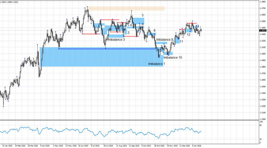 Напомню, что торговать следует не от новостей, которые сегодня имеют один окрас, а завтра – совершенно другой. Ничего не мешает странам ЕС и Великобритании в очередной раз пойти на уступки Дональду Трампу, и конфликт будет на этом исчерпан. А способов «сделать реверанс» – огромное множество. Европа может не отказываться от Гренландии полностью, а, например, сдать ее в аренду. Или же просто позволить размещать на острове американские военные базы. Таким образом, те пошлины, которые анонсировал Трамп, могут быть отменены до 1 февраля еще 10 раз. Напомню, что по евровалюте «бычий» импульс более сильный, но и там нет паттернов, от которых можно было бы открыть сделки на покупку на этой неделе. Так как «бычий» тренд по евро сохраняется, на мой взгляд, сохраняется и «бычий» тренд по британцу. Я не могу себе представить «бычий» тренд по евровалюте и одновременно «медвежий» тренд по фунту. Однако рабочих «бычьих» паттернов в данное время нет. И шансов на их образование на этой неделе тоже немного. Нет съемов ликвидности, нет движений, которые могли бы привести к образованию зон интереса. В долгосрочном плане я по-прежнему жду роста пары. В понедельник трейдеры узнали о новых пошлинах в адрес Великобритании, которые в Лондоне оценили осуждающе. Глава правительства Кир Стармер сообщил, что в ближайшее время проведет личные переговоры с Дональдом Трампом и попытается найти выход из ситуации. Однако решать вопросы с Трампом следует Дании или, по крайней мере, Евросоюзу, а не Великобритании. Экономические данные на этой неделе могли порадовать трейдеров-быков, если бы они их не проигнорировали. Не далее, чем сегодня, стало известно о росте инфляции в декабре, поэтому ожидания по новому смягчению ДКП Банка Англии тут же улетучились с рынка. Однако продолжить рост британец не пожелал, а для начала нового падения – не нашел причин. В США общий информационный фон остается таковым, что ничего, кроме падения американца, в долгосрочном плане ожидать нельзя. Ситуация в США остается достаточно сложной. «Шатдаун» длился полтора месяца, демократы и республиканцы договорились о финансировании лишь до конца января, который заканчивается через 2 недели. Статистика по рынку труда США продолжает разочаровывать. Последние три заседания FOMC завершились принятием «голубиного» решения, а последние данные позволяют предположить, что пауза в смягчении ДКП будет недолгой. Военная агрессия Трампа, угрозы в адрес Дании, Мексики, Кубы и Колумбии, возбуждение уголовного дела против Джерома Пауэлла и новые торговые пошлины прекрасно дополняют текущую картину «американского политического кризиса». На мой взгляд, у быков есть все, чтобы начать новое наступление и выполнить возврат к пикам прошлого года. Для «медвежьего» тренда нужен сильный и стабильный для американца позитивный информационный фон, которого при Дональде Трампе сложно ожидать. Да и самому президенту США не нужен дорогой доллар, так как торговый баланс в этом случае останется дефицитным. Поэтому в «медвежий» тренд по британцу я по-прежнему не верю, несмотря на довольно сильное падение в сентябре и октябре. Слишком много факторов риска остается висеть мертвым грузом на долларе. За счет чего медведи собираются двигать фунт дальше вниз, если в данное время формируется все-таки «медвежий» тренд? При поя