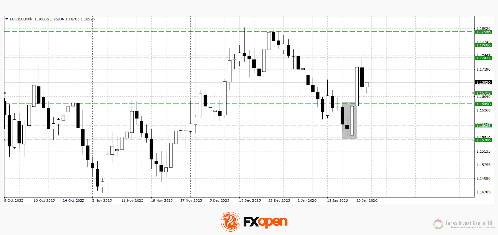 Дополнительный фон формирует геополитическая повестка и обсуждения в рамках саммита в Давосе, где внимание сосредоточено на перспективах мировой экономики, торговых тарифах и координации политики ведущих стран, что также усиливает осторожность на валютном рынке.