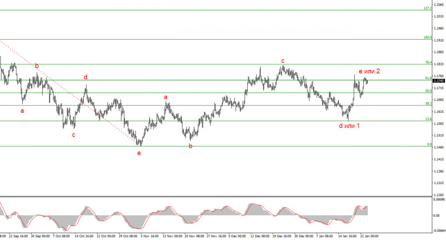 Анализ EUR/USD. 23 января. Евро споткнулся о европейскую статистику Политический риски – главная проблема доллараВолновая картина по EUR/USD: