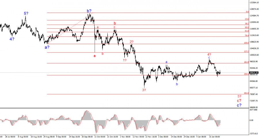 Биткоин усложнил предполагаемую коррекционную волну 4 до ярко выраженной трехволной. Следовательно, ее построение может быть завершено. После завершения построения предполагаемой волны с в 4 началось снижение котировок, которое было остановлено отметкой 88150$, что приравнивается к 200,0% по Фибоначчи. Удачная попытка прорыва этой отметки укажет на готовность рынка к новым продажам, согласно понижательной структуре волн. На старшем масштабе продолжает построение понижательная коррекционная структура a-b-c, которая легко может трансформироваться в полноценный импульсный участок тренда. Если текущая волновая разметка неверна, то я все равно ожидаю снижения на основании простейших структур. Напомню, что большая часть структур состоит из трех или пяти волн коррекционного или импульсного типа. Так как в последние недели мы наблюдали явную коррекцию, которая имеет на текущий момент три волны, то логично предположить новый импульсный, понижательный набор волн. Я ожидаю построение волны 5 в с в с, лоу которой должен находиться ниже отметки 80500$. Министр финансов США Скотт Бессент подтвердил планы правительства по созданию стратегического биткоин-резерва. Напомню, что в 2025 году Дональд Трамп неоднократно говорил о желании превратить Америку в мирового лидера криптовалютного сегмента, однако в прошлом году неоднократно поступали сообщения о том, что Белый дом не намерен закупать биткоин. В резерв будут входить лишь конфискованные в рамках уголовных дел крипто-активы. Однако г-н Бессент заявил, что правительство США также ищет бюджетно-нейтральные способы пополнения запаса ключевых цифровых активов. Вероятно, речи о покупке за бюджетные средства все еще не идет, но ведется поиск других источников финансирования для инвестиций. Также Бессент сообщил о введении запрета на продажу крипторезервов. В США продолжается рассмотрение законодательного акта под названием Clarity Act, который должен создать четкую нормативную базу для криптовалют, разграничить полномочия между SEC и CFTC, классифицировать различные токены, сделать процес инвестирования для потребителей более безопасным и прозрачным. Однако на текущий момент рассмотрение застопорилось из-за отзыва биржей Coinbase своей поддержки законопроекта.