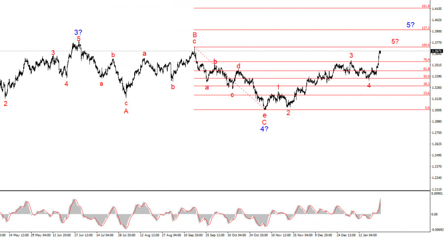 Исходя из проведенного анализа EUR/USD, я делаю вывод, что инструмент продолжает построение повышательного участка тренда. Политика Дональда Трампа и денежно-кредитная политика ФРС остаются весомыми факторами падения американской валюты в долгосрочном плане. Цели текущего участка тренда могут простираться вплоть до 25-й фигуры. На текущий момент я считаю, что коррекционная волна 4 завершила свое построение, поэтому ожидаю дальнейшего повышения котировок с первой целью, находящейся около отметки 1,1918.Волновая картина по GBP/USD: