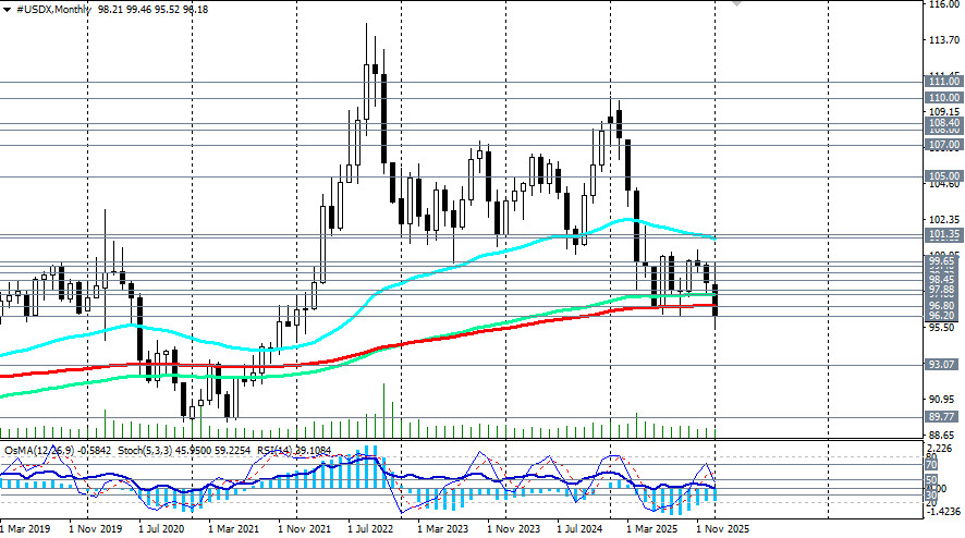 Несмотря на то что доллар фундаментально выглядит недооценённым относительно дифференциала процентных ставок, ряд долгосрочных факторов (в частности, ухудшение фискальной репутации США, рост государственного долга, снижение доверия к торговой и внешнеполитической стратегии, опасения утраты независимости ФРС) продолжает оказывать на него давление, перевешивающее краткосрочные макроэкономические позитивные сигналы и удерживающие доллар в нисходящем тренде. Техническая картина USDX Несмотря на сегодняшний отскок, доллар остается в уязвимом положении. Ключевой уровень сопротивления - 96.80. Возвращение и закрепление выше этой отметки необходимо для отмены немедленной угрозы углубления падения. Ближайшая поддержка - 95.52 (вчерашний минимум). Её пробой откроет путь к тестированию более глубоких минимумов, возможно, к уровням 95.00 - 94.50 - 94.00. Среднесрочный прогноз Баланс рисков смещен в сторону дальнейшего ослабления доллара. Структурные факторы и ожидания смягчения монетарной политики создают мощный нисходящий тренд. Любое укрепление, скорее всего, будет носить временный и коррекционный характер, если только ФРС не совершит резкий разворот в сторону ужесточения риторики, что на текущем этапе выглядит маловероятным. Заключение Доллар США находится в сложной фазе перехода. Несмотря на отдельные отскоки, общий тренд остаётся нисходящим, а рынок всё больше фокусируется на перспективах смягчения политики ФРС и политических рисках. Краткосрочная динамика сегодня полностью зависит от тональности Джерома Пауэлла. Однако за пределами сегодняшнего заседания для USD сохраняется сложный фон: политическое давление на ФРС, растущий дефицит бюджета и ожидания снижения ставок будут продолжать формировать медвежий настрой. Инвесторам следует готовиться к повышенной волатильности, особенно, в период публикации решения ФРС по ставкам – пресс-конференции и завтра. Более четкие перспективы доллара прояснятся после того, как станут известны не только итоги заседания, но и имя следующего председателя ФРС, что окончательно определит монетарный курс на следующие годы. Пока же тренд остается в пользу слабого доллара, а любое его восстановление выглядит как возможность для продаж.Материал предоставлен компанией InstaForex - www.instaforex.com