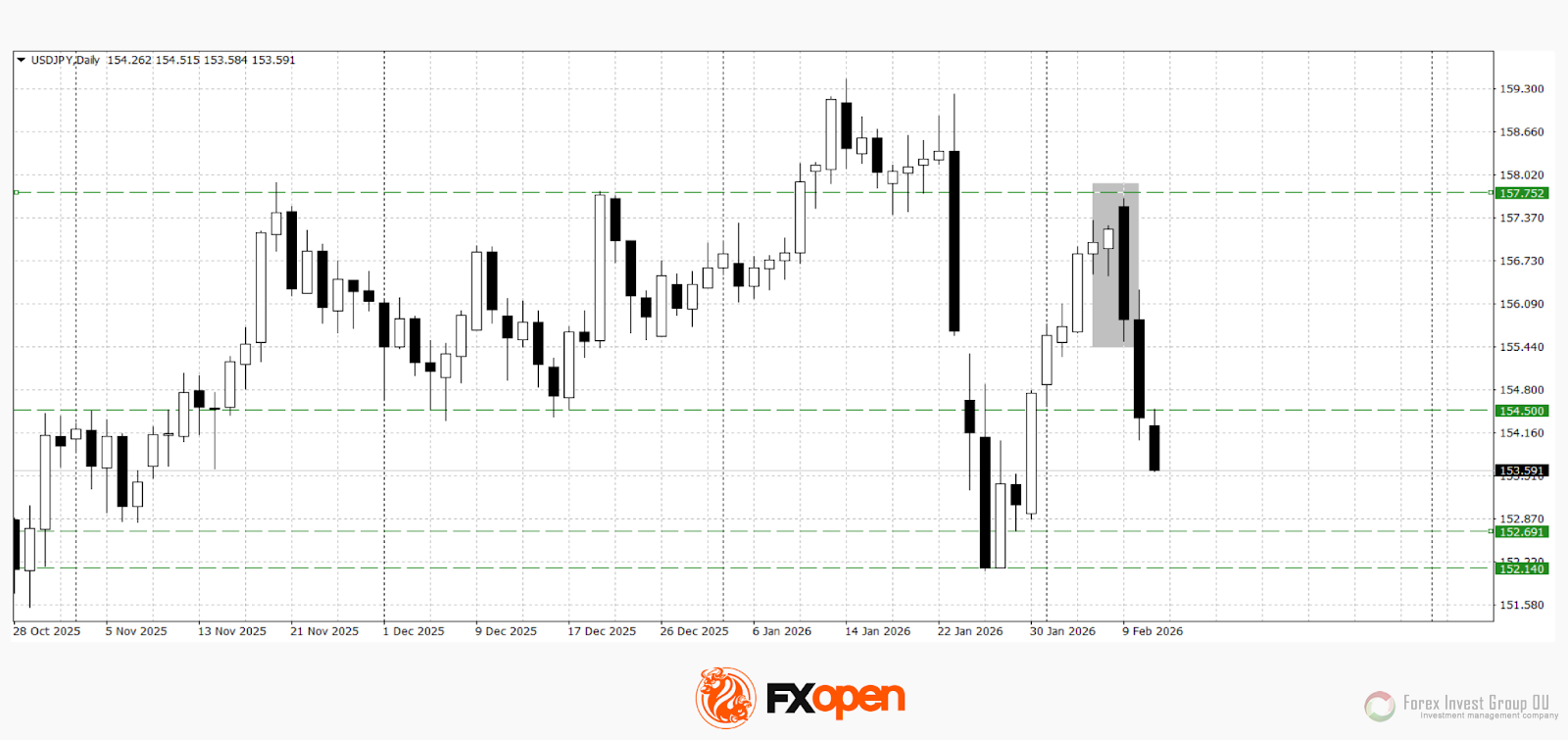 Пара USD/JPY торгуется под давлением на фоне ожиданий по NFP и внутреннего фундамента из Японии. Иена получила поддержку после уверенной победы премьер-министра Санаэ Такаити на досрочных выборах, что усилило оптимизм инвесторов в отношении экономических перспектив страны. Резкий рост японского фондового рынка и обновление рекордных значений индексов Nikkei и Topix были восприняты как сигнал политической стабильности и возможности проведения масштабных реформ. Это усилило спрос на иену и оказало дополнительное давление на пару USD/JPY.