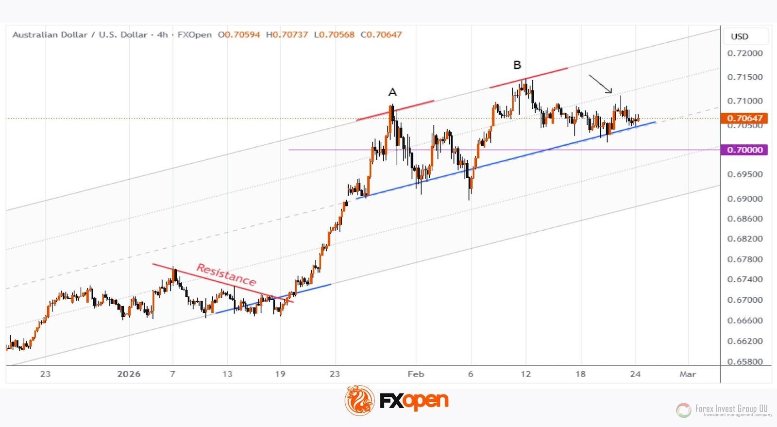 FxSignal 25-02-2026, 12:00 67 Аналитика, прогнозы валютного рынкаКак свидетельствует график AUD/USD, австралийский доллар демонстрировал сильную динамику в январе и феврале. Так, с начала года курс “австралийца” к “американцу” вырос почти на 6%.