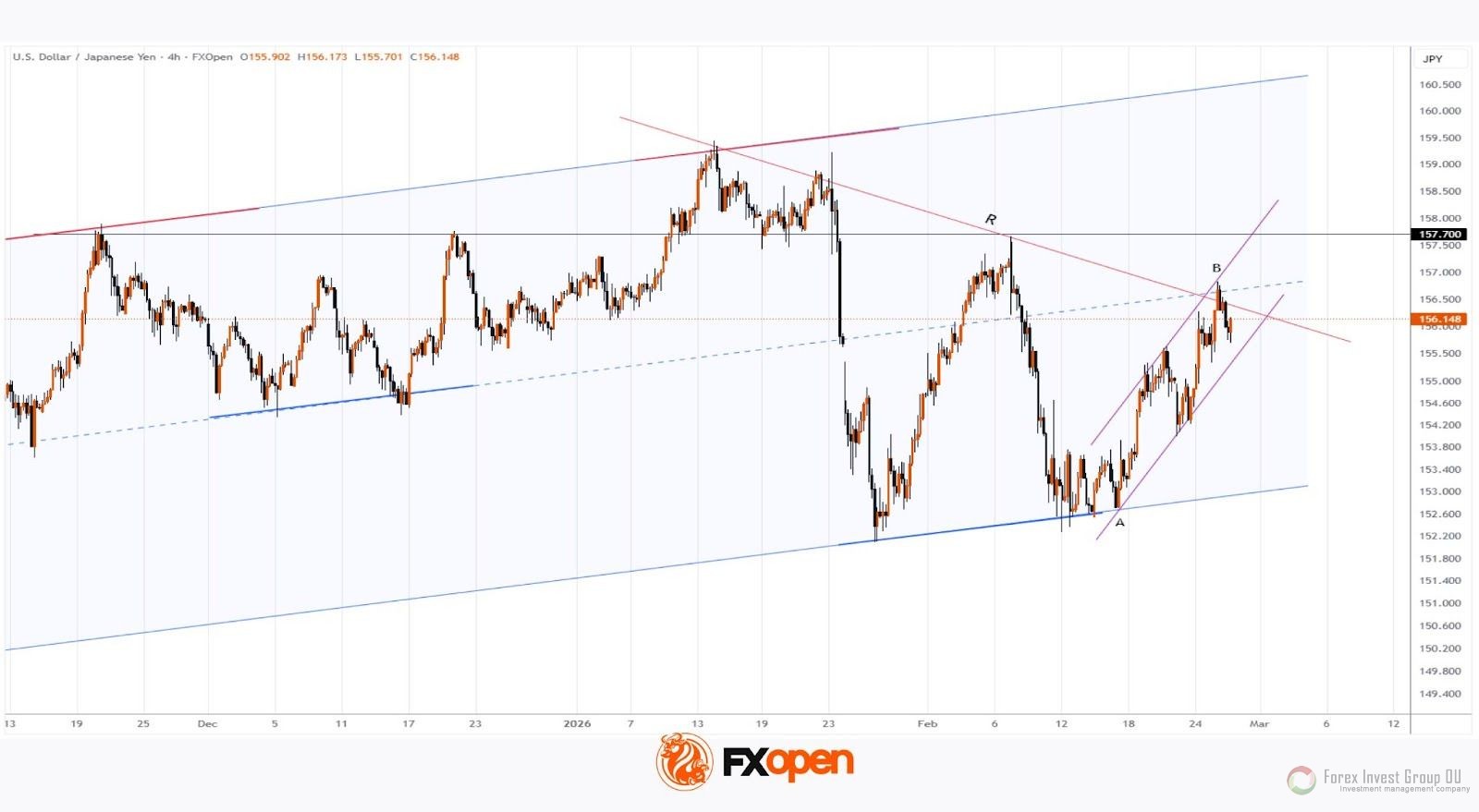 FxSignal 26-02-2026, 15:00 85 Аналитика, прогнозы валютного рынкаКак свидетельствует график USD/JPY, курс продемонстрировал бычью динамику во второй половине февраля. Этому способствовала комбинация фундаментальных факторов, среди которых: