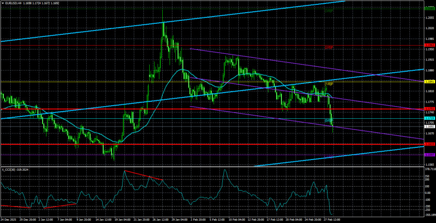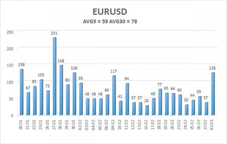 Валютная пара EUR/USD в течение понедельника рухнула вниз. Таким образом, сбылись самые мрачные из наших прогнозов. Рынок вновь использует доллар, как защитный актив, не найдя ему альтернативы среди других валюты. Евро и фунт летят вверх тормашками, что, естественно, выгодно Евросоюзу и Великобритании. А вот кому выгоден дорогой доллар – никому не интересно. В принципе, говорить о войне на Ближнем Востоке особо и нечего. Чем отличаются войны друг от друга? Ничем. Уничтожение инфраструктуры, удары по военным базам, гибель среди гражданских. Штаты и Израиль нанесли первый удар по Ирану в субботу. С тех пор Тегеран нанес ответные ракетные удары уже более, чем по десятку стран, в которых располагаются американские военные базы или которые считаются союзниками США и Израиля. Переговоры между Тегераном и Вашингтоном фактически провалились. Дональд Трамп готов отдать приказ о прекращении огня только в том случае, если Тегеран примет условия Вашингтона. Но давайте будем честны: Тегеран мог принять условия Вашингтона на протяжении последних десятилетий много раз. Вопрос в том, насколько очередной ультиматум Трампа можно считать «условием» или «деловым предложением»? По сути, Трамп требует капитуляции, смены политического курса и режима. Проще говоря, Трамп хочет видеть во главе Ирана послушных лидеров, готовых исполнять приказы Белого дома. Ничего нового, как видим, в политике Трампа нет. Против всего мира он ввел различные пошлины и санкции, а против Ирана – вводить уже нечего. Страна живет в условиях глобальных санкций примерно 50 лет. Поэтому вместо «торговой дубины» пришлось использовать «военную». Рынки же реагируют на происходящее точно также, как и при любой другой эскалации на Ближнем Востоке. Цены на нефть и газ уже улетели в космос, рынки страхуются от затяжной войны с Ираном, в которую может быть втянут в той или иной мере весь Ближний Восток. Что касается валютного рынка, то здесь, как мы уже сказали, все просто. Доллар растет просто потому, что является защитным активом, «тихой гаванью». В реальности, весь 2025 год доллар активно разбазаривал свой статус «защитной валюты». Однако, когда началась новая полноценная война, рынок очень быстро вернулся в доллар, так как других альтернатив не нашлось. И вот американская валюта, которая за первых два месяца очередного «веселого» года, могла уже опуститься за 20-й уровень в паре с евровалютой, уверенно растет, игнорируя макроэкономические факторы. Как долго будет продолжаться рост, сказать попросту невозможно. Все будет зависеть от того, сколько будет длиться война на Ближнем Востоке, как долго будет оставаться заблокированным Ормузский пролив. Кстати, эксперты сообщили, что блокировать Ормузский пролив на протяжении длительного времени Иран не сможет. Точно также, как Дональд Трамп не сможет свергнуть действующий режим власти и заставить отказаться Тегеран от ядерного вооружения без сухопутной операции. В Иране, тем временем, сообщили, что готовы и дальше отвечать ударом на удар. Таким образом, речи о капитуляции не идет, несмотря на ликвидацию многих высокопоставленных чиновников. Средняя волатильность валютной пары EUR/USD за последние 5 торговых дней по состоянию на 3 марта составляет 59 пунктов и характеризуется, как «средняя». Мы ожидаем движение пары между уровнями 1,1633 и 1,1751 во вт