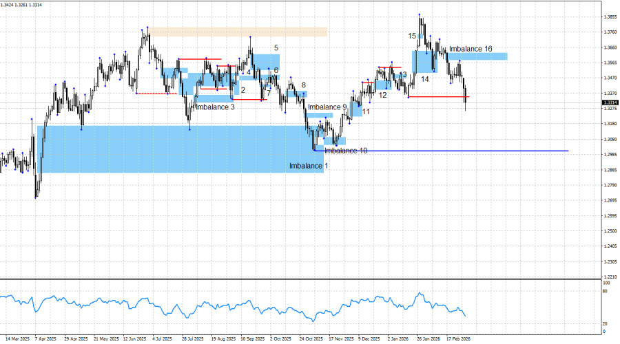Первые два дня недели все СМИ только и пишут, что о резком росте цен на нефть и газ, о блокировке Ормузского пролива, ударах по нефтегазовым заводам, что значительно ухудшает экономические перспективы всего мира. В первую очередь, энергетически зависимых европейских стран. На мой взгляд, не только статус доллара, как защитного актива, играет роль в текущем падении пар EUR/USD и GBP/USD, но и ухудшающиеся экономические перспективы Европы и Великобритании. Рост цен на нефть и газ (а в Европе газ уже подорожал на 100%) не только приведет к новому росту инфляции, но и заметно снизит объемы промышленного производства, замедлит и без того растущую не самыми быстрыми темпами экономику. Таким образом, военный конфликт на Ближнем Востоке одновременно сработал в пользу доллара и против европейских валют. «Бычий» тренд по британцу сохраняется. Таким образом, до тех пор, пока он сохраняется (выше уровня 1,3012), я бы больше внимания уделял «бычьим» сигналам. Падение британца может быть достаточно сильным, но может и закончиться в любой момент. Единственный рабочий на текущий момент имбаланс 16 так и не образовал никакого сигнала. Оснований для новых сделок в данное время нет. Возможный съем ликвидности со свинга от 19 января так и не стал реальным. На этой неделе могут быть образованы «медвежьи» имбалансы, но при открытии сделок на продажу важно понимать, долго ли доллар будет пользоваться поддержкой рынка на фоне геополитической обстановки на Ближнем Востоке? Информационный фон во вторник отсутствовал для британца и американца, что не остановило трейдеров от новых покупок второго. Война на Ближнем Востоке не имеет ни одного шанса на завершение в ближайшее время, а чем дольше она продолжается, тем больше нефтяных и газовых объектов будет уничтожено или прекратит свою работу. В США общий информационный фон остается таковым, что ничего, кроме падения американца, в долгосрочном плане ожидать нельзя. И война между Ираном и США пока мало что меняет. Ситуация для американского доллара остается достаточно сложной в долгосрочном плане и весьма позитивной в краткосрочной. Но в том то и дело, что позитивна она только в краткосрочной перспективе. Статистика по рынку труда США продолжает разочаровывать чаще, чем радовать. Последние три заседания FOMC из четырех завершились принятием «голубиного» решения. Военная агрессия Трампа, угрозы в адрес Дании, Мексики, Кубы, Колумбии, стран ЕС, Канады и Южной Кореи, возбуждение уголовного дела против Джерома Пауэлла, «шатдауны», скандал с элитой США по делу Эпштейна, возможный импичмент Трампа к концу году и весьма вероятно проигранные выборы республиканцами прекрасно дополняют текущую картину политического и структурного кризиса в Америке. На мой взгляд, у быков есть все, чтобы продолжать наступление в течение 2026 года. Для «медвежьего» тренда нужен сильный и стабильный для американца позитивный информационный фон, которого при Дональде Трампе сложно ожидать. Да и самому президенту США не нужен дорогой доллар. Поэтому в «медвежий» тренд по британцу я по-прежнему не верю. Слишком много факторов риска остается висеть мертвым грузом на долларе. От «медвежьих» паттернов можно рассмотреть открытие сделок на продажу, но лично я бы этого не советовал трейдерам. Считаю последнее падение пары в некоторой степени случайным сте